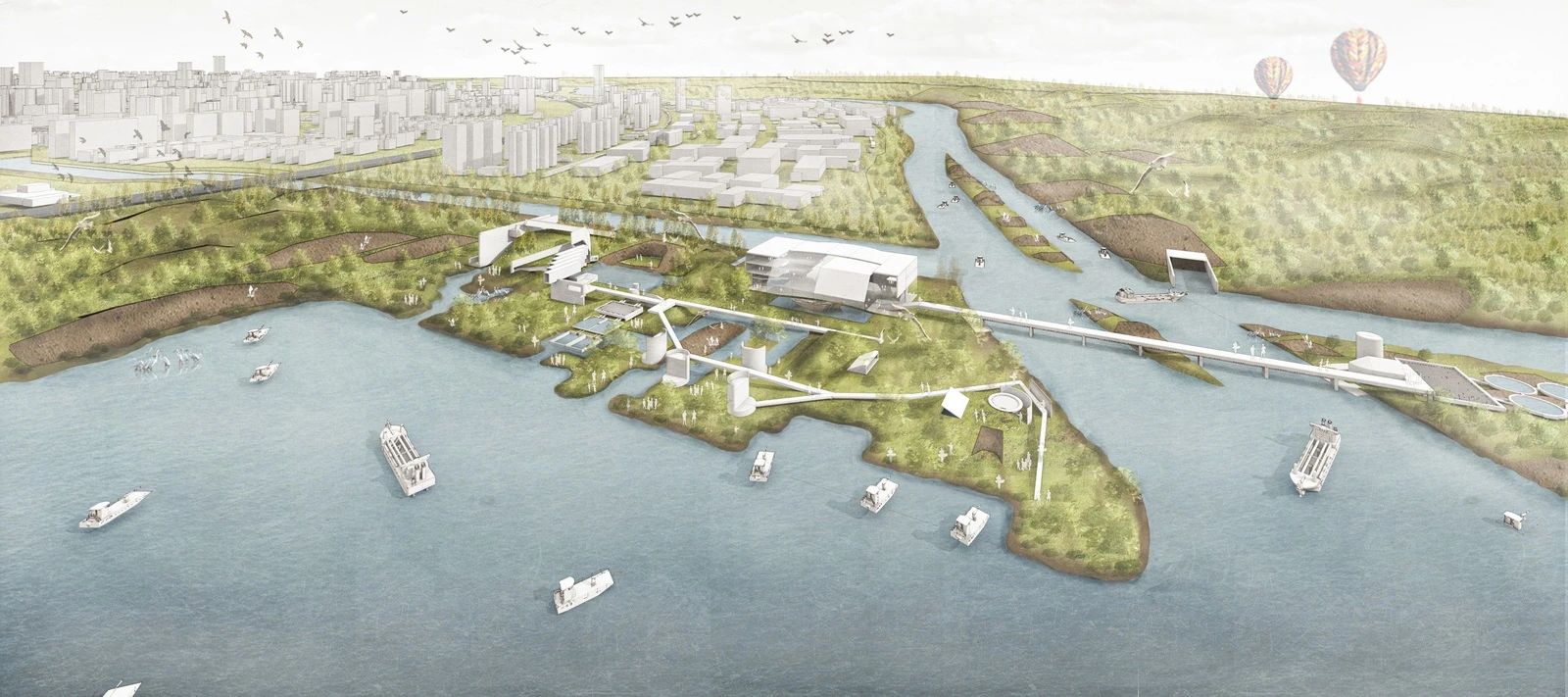 若淤积问题能够得以合理利用,淤泥便转化为城市发展的重要资源,构成一种“淤积即城市化”的发展模式。本设计以水质净化厂为核心,运用系统性清淤和水资源再生等技术,创造集生态景观公园和展览教育中心于一体的多功能生态综合体。